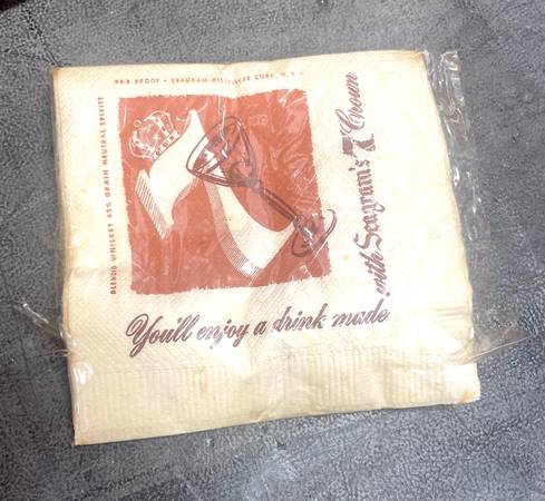 Seagram’s Travel Bar Case. MCM. It’s a piece of luggage that holds bottles, glasses and extra accessories. Included: 7 Classic, vintage Seagram’s stirrers. 4 glasses. Stack of Seagram’s Napkins....