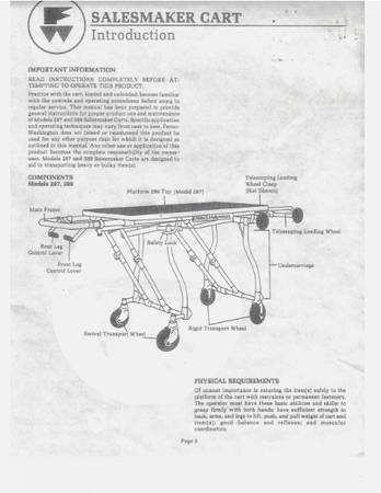 Ferno Salesmaker 286 Stair Climber Collapsible Cart. This is the used item, but it still works great! 300 Pound Plus Capacity. There is one on eBay now, The Same Cart For $1350.00 Asking for $300...