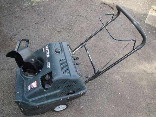Nice/powerful push blower, featuring, 5HP engine, 22" blade... Costs more than twice as much to buy brand new... 4 stroke, so it runs on gas only(not 2 stroke mixed with oil)... Excellent condition, and runs great! Even though it doesn't have drive wheels, the rubber paddle blades do a good job of pulling it along, so you really don't have to push... Just gone through, carb cleaned, etc... Has working electric start... Starts easy with pull start, too... It's missing the trap door to access the oil dipstick, but that's purely cosmetic... If you still see it, I still have it... Email with phone # only to avoid scammers...