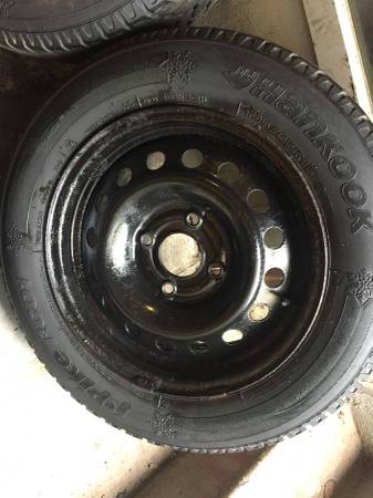 195-65-15 hankook ipike rc01 snow tires mounted on 4 lug steel...