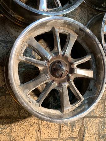(4) 20"x 8.5 6 lug american racing wheels, in good structural condition (no bends or cracks) they need to be painted or refinished the chrome is peeling/pitted
